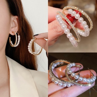 Khuyên Tai Hình Chữ C Đính Ngọc Trai Phong Cách Thời Trang Hàn Quốc Dành Cho Nữ