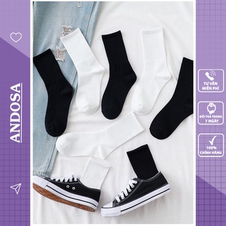 Tất vớ cổ cao nam nữ trơn basic hàn quốc cute dễ thương cotton dày đẹp ANDOSA T01