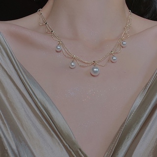 Dây Chuyền Nhiều Lớp Đính Ngọc Trai Phong Cách Công Chúa Cổ Điển Sang Trọng Dành Cho Nữ