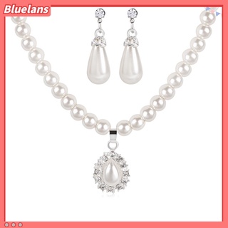 Bộ Vòng cổ + Đôi Bông Tai Hình Giọt Nước Đính Ngọc Trai Giả Thời Trang Cho Nữ