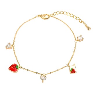 Vòng Tay Hợp Kim Đính Đá Và Hình Trái Dâu Xinh Xắn Cho Nữ