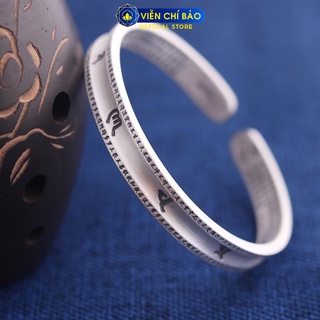 Kiềng tay bạc nam nữ, lắc tay bạc Lục tự minh chú khắc Bát Nhã Tâm Kinh chất liệu bạc Thái 925 Viễn Chí Bảo L100428