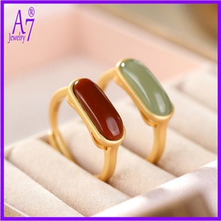 Nhẫn Bạc A7Jade S925 Đính Đá Mã Não Có Thể Xoay Được