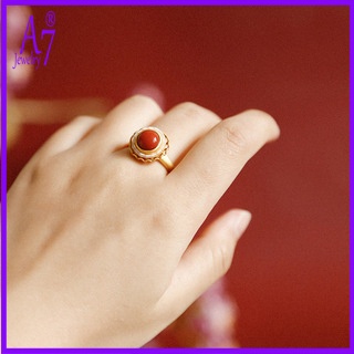 Nhẫn Mạ Bạc S925 Đính Đá Mã Não Đỏ Dễ Điều Chỉnh