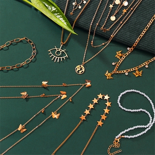 Vòng cổ Nhiều Lớp Mặt Hình Bướm Và Ngọc Trai Thời Trang