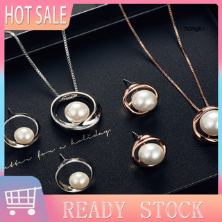 Bộ vòng cổ + Bông Tai Đính Ngọc Trai Nhân Tạo Cho Nữ