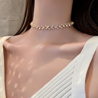Vòng cổ Ngắn Đính Ngọc Trai Và Đá Zircon Xinh Xắn Cho Nữ