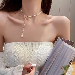 Vòng cổ Mặt Hình Nơ Đính Ngọc Trai Phong Cách Thời Trang 2022