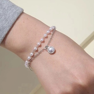 Vòng Tay Hai Lớp Đính Ngọc Trai Nhân Tạo Thời Trang Hàn Quốc