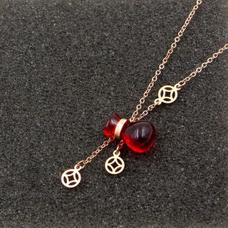 Dây Chuyền Nữ Hồ Lô Đỏ May Mắn Titan Ko đen TT 0838