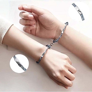 Set 2 Vòng Tay Bện Dây Co Giãn Mặt Nam Châm Thời Trang Cho Cặp Đôi