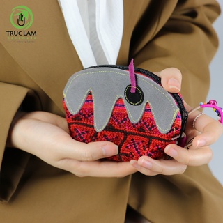 Ví Cầm Tay Nữ VÍ Sò Cầm Tay Vải Thổ Cẩm Phối Vải Da Lộn Có Gắn Vòng Chuông (B) - Trúc Lâm Handmade