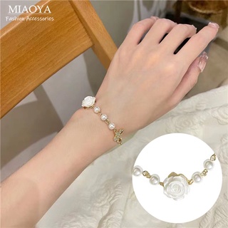 Vòng Tay Hoa Trà Trắng Đính Hạt Ngọc Trai Thời Trang