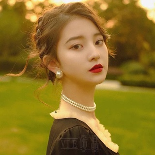 Vòng cổ Hai Lớp Đính Ngọc Trai Phong Cách retro Pháp