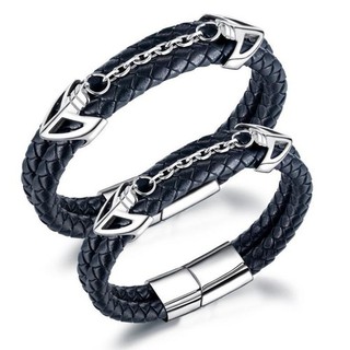 Vòng Tay Nam Dây Da Titan Ko Đen TT 2579