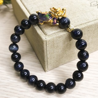 Vòng tay phong thủy mệnh Mộc - Thủy - Vòng phong thủy - Vòng tay nam nữ mắt hổ chim ưng mix long quy vàng V325-08
