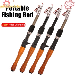 PISTACHIO 1.3m 1.6m 1.8m Portable Lure Rods Telescopic Retractable Fishing Equipment Fishing Rod Mini Short Light FRP Material Casting Spinning Ceramic Ring Wooden Handle/Multicolor