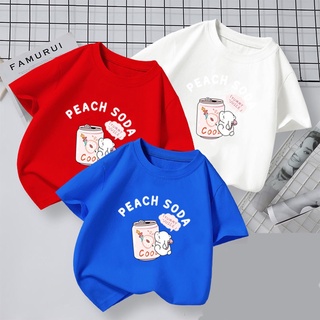 NRVP Áo thun trơn tay ngắn cổ tròn in hoạt hình unisex trẻ em 3 -11 tuổi