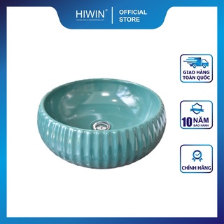 Chậu rửa mặt lavabo sứ đặt bàn nghệ thuật màu xanh dáng tròn HIWIN LP-A544