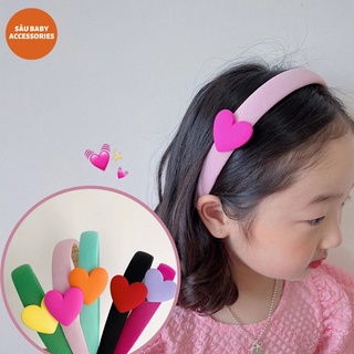 Bờm xước tóc vải màu trơn đính trái tim siêu đáng yêu cho bé