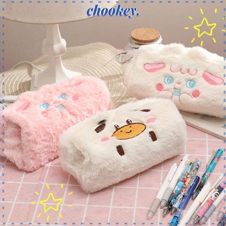 Túi Đựng Bút Bằng Vải Canvas Phối Lông Hình Chú Lừa Dễ Thương