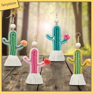 1 Cặp Bông Tai Dây Thừng Cotton Tua Rua Hình Xương Rồng Phong Cách Bohemian