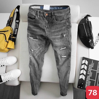Quần jeans nam màu xám nhạt trơn rách gối chất jean bò cao cấp co dãn 4 chiều đẹp rin from dáng rin skinny ADO78