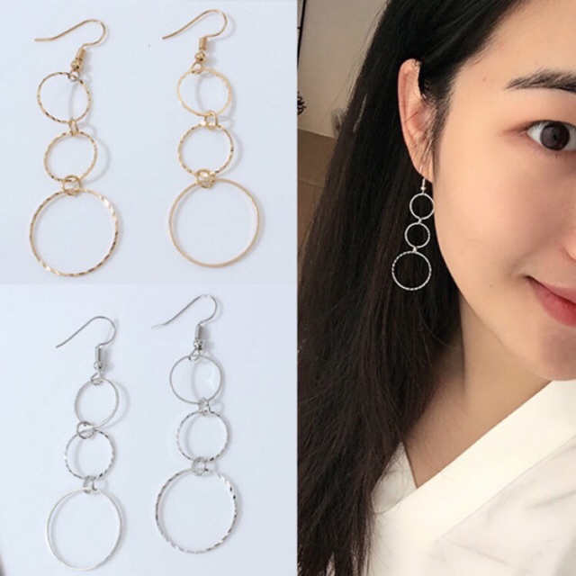 Giới thiệu Bông tai bạc bộ ba vòng tròn dáng dài A2107