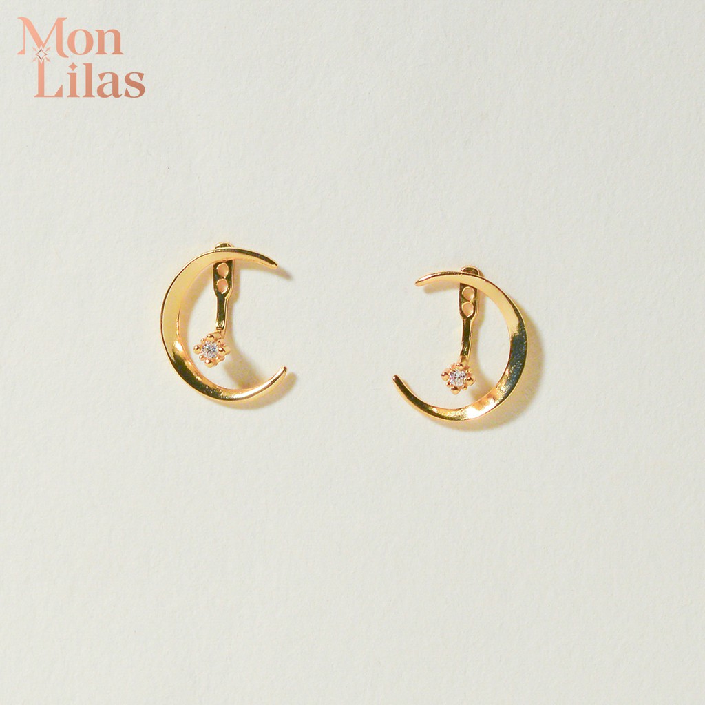 Giới thiệu Bông tai bạc Mon Lilas Mặt trăng vàng đính đá K092008