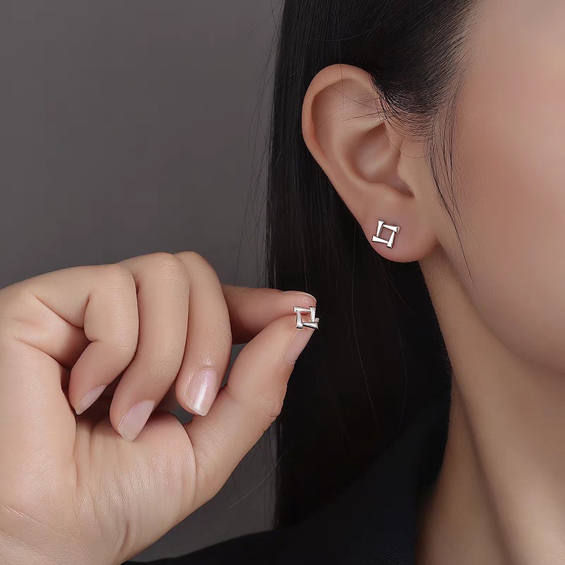 Giới thiệu Bông tai bạc nữ hình tam giác hình vuông cá tính nhỏ xinh DaLiA Jewelry khuyên tai bạc basic 925