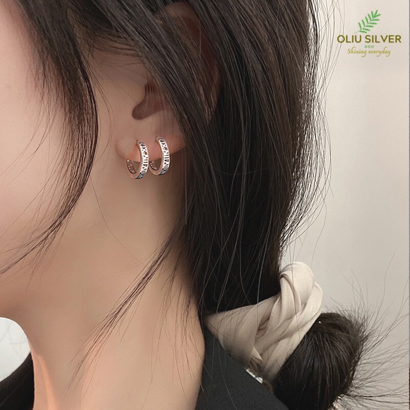 Phụ Kiện & Trang Sức Nữ > Bông tai > Bông Tai Bạc S925 Chữ Số La Mã Mini Hoop Dạng Khoen Tròn Trẻ Trung Cá Tính | Khuyên Tai Unisex Trang Sức Bạc Dạng Khoen