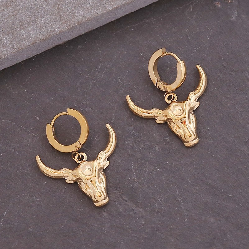 Pinkdudu Bohemian Bull Head Moon Earrings Cá tính Bông tai đinh tán bằng thép titan cho phụ nữ Trang sức Phụ kiện Quà tặng PD505