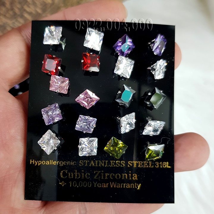 Bông tai đá màu vuông (1 chiếc) đủ kích thước.