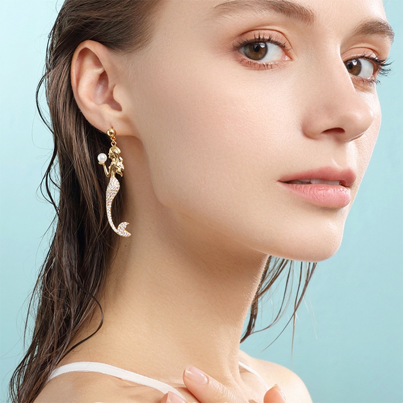 Giới thiệu Bông Tai Dáng Dài Hình Nàng Tiên Cá Đính Ngọc Trai Màu Vàng Hồng Bằng Hợp Kim Thanh Lịch Thời Trang Cho Nữ PD643