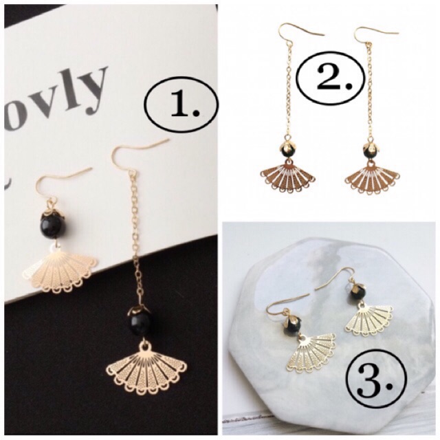 Thông tin chi tiết sản phẩm: Màu sắc: màu vàng Kiểu dáng: kiểu cây quạt phong cách Chất liệu: Bạc pha Gồm 3 mẫu: dài , ngắn, bất đối xứng. Dùng đeo thời trang, phối trang phục, sưu tập, quà tặng