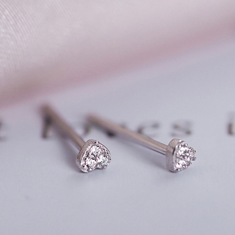 Giới thiệu Bông Tai Hình Trái Tim Đính Đá Zircon Mini Màu Bạc Dễ Thương Cho Nữ