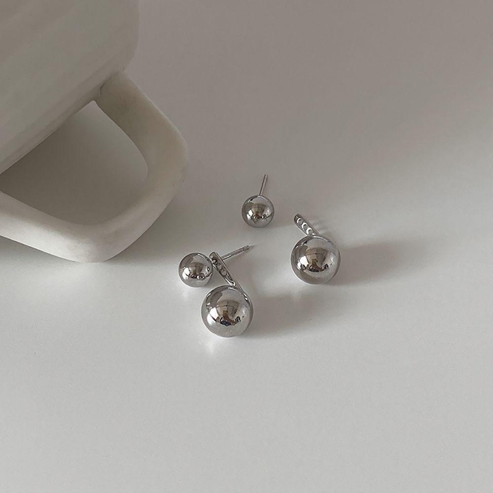 Kích thước: khoảng 2,5x1,1cm Bông tai bi Bông tai Stud Bông tai Nữ Trang sức Thời trang Hợp kim Đôi Quả bóng Tròn Mặt sau Treo Cô gái Hàn Quốc Hợp thời trang Thanh lịch Tinh tế