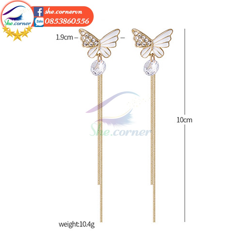 Giới thiệu Bông tai hoa tai E3255 hồ điệp đính đá tua dua dài ánh vàng phong cách Hàn Quốc