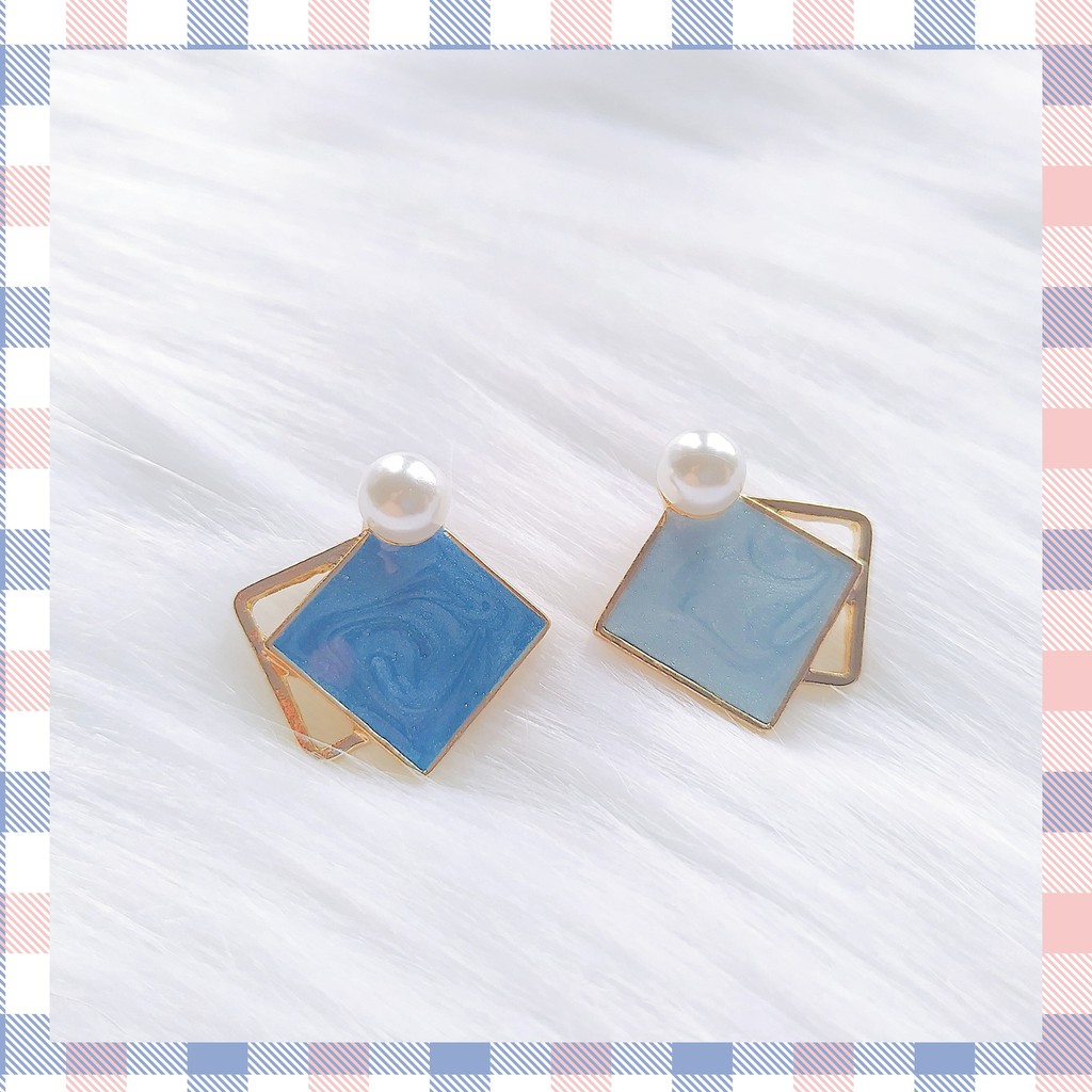 Giới thiệu Bông Tai Họa Tiết Vuông Màu Xanh Marble Sang Trọng Dành Cho Nữ