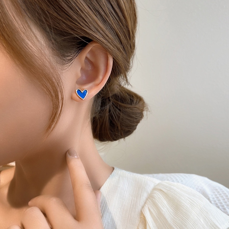Giới thiệu Bông tai hợp kim phối mặt hình trái tim màu xanh dương thời trang