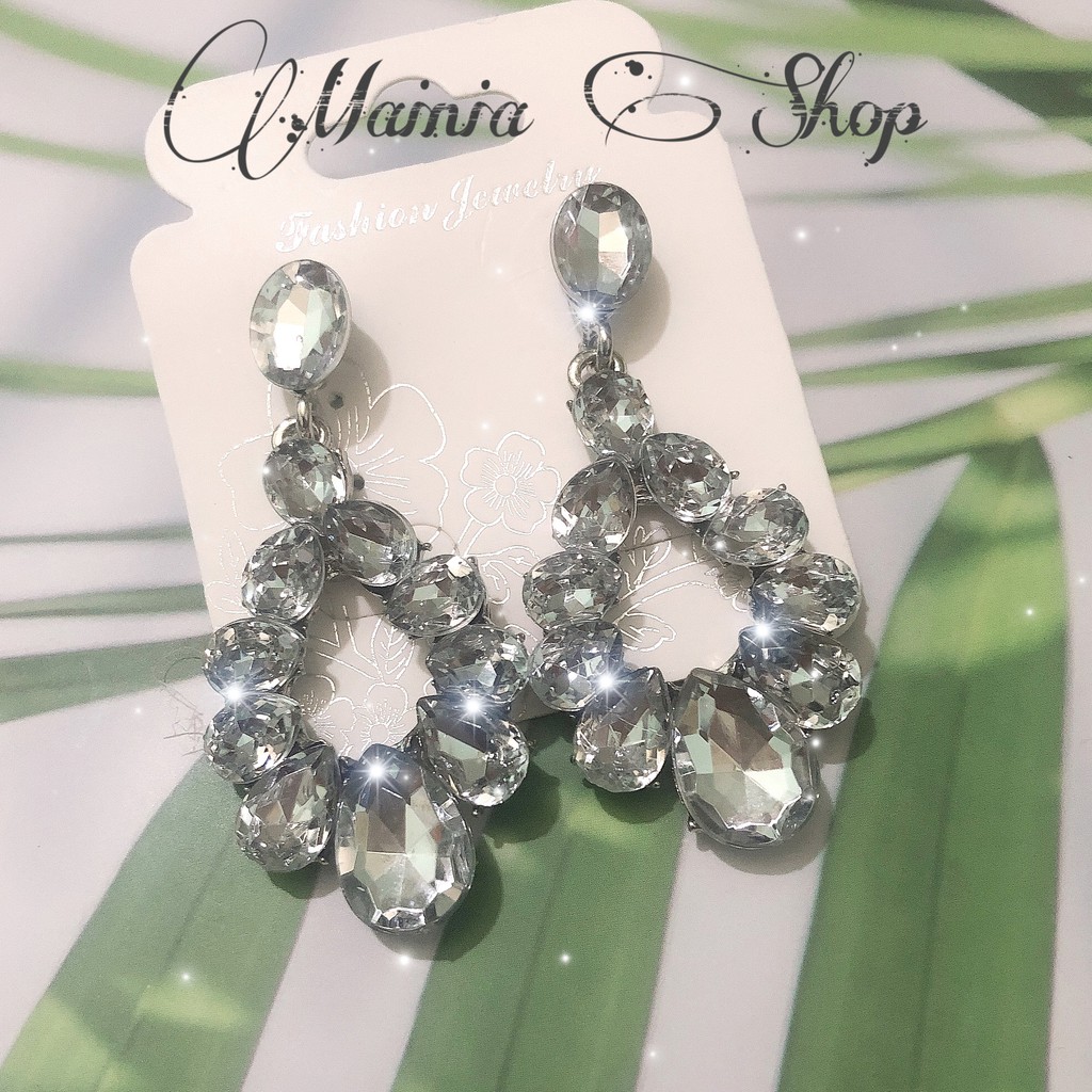 Bông Tai Khuyên Tai Đính Đá Hình Giọt Nước Hàn Quốc Sang Chảnh Dự Tiệc Mainia Shop