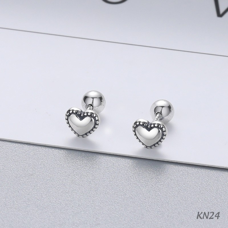 Giới thiệu Khuyên tai nam nữ bạc mặt trái tim chốt bi tròn vặn Black Heart đơn giản, cá tính | HARMONY ACCESSORIES KN24