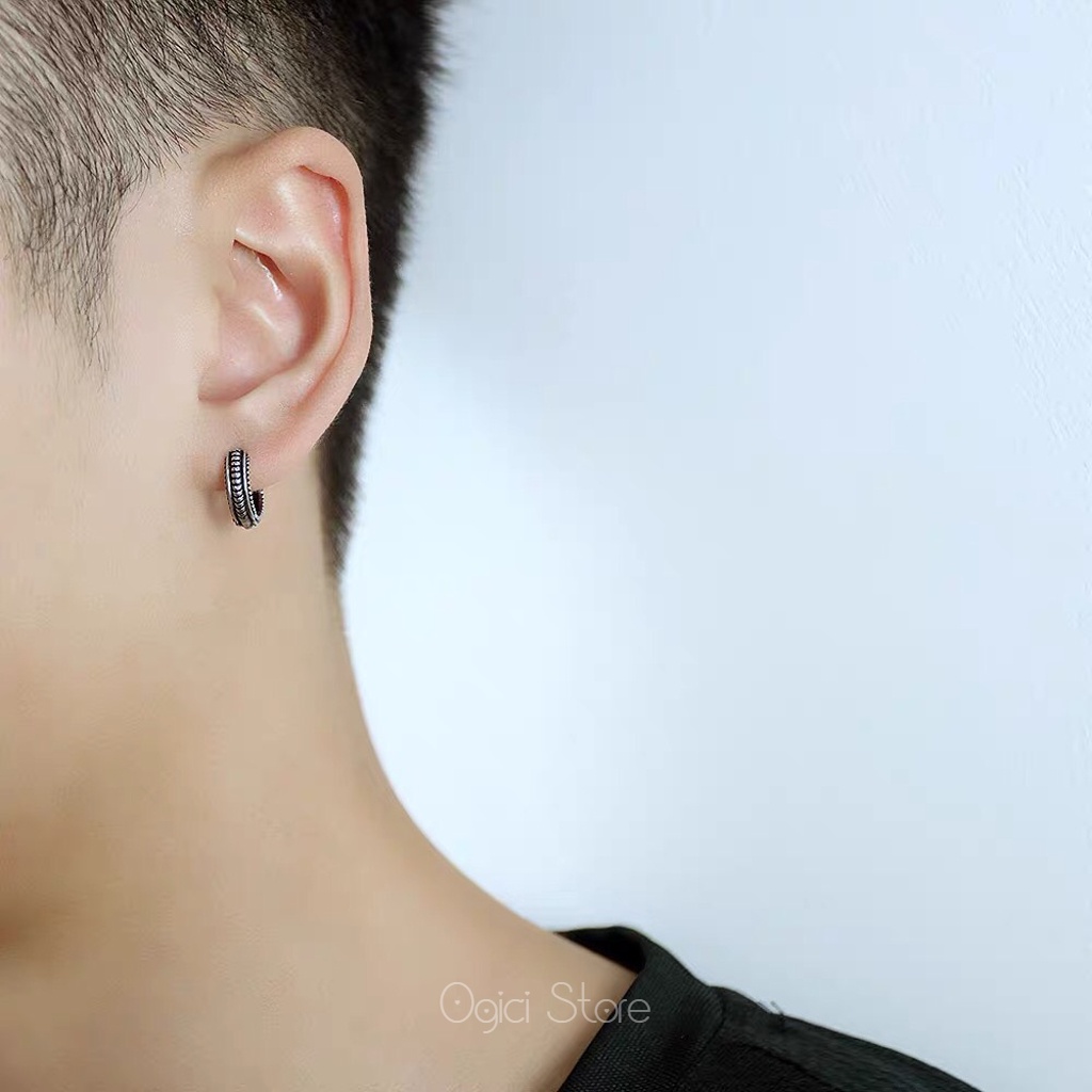 Bông tai, Khuyên tai nam nữ thép không gỉ dáng tròn thời trang Milipede tối màu cá tính, Unisex, 1 chiếc