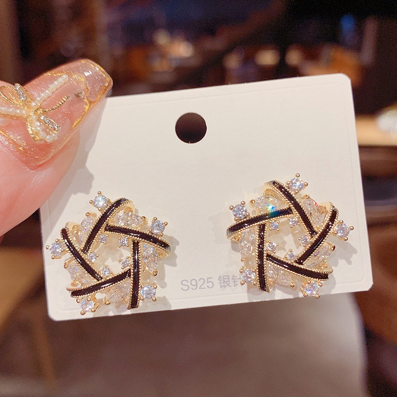 Giới thiệu Bông Tai Mạ Bạc 925 Hình Cánh Hoa Đính Kim Cương Giả Sang Trọng Cho Nữ