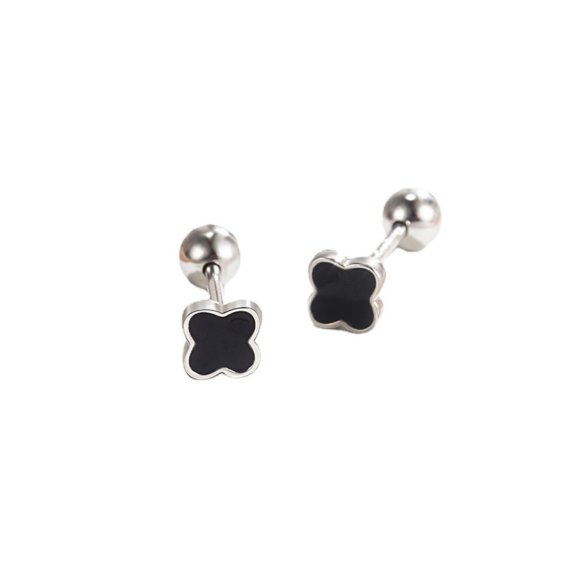 #Bạc S925 #Bông tai cỏ bốn lá Mini màu đen #Phụ nữ có vít tròn tình yêu #Hoa tai mới