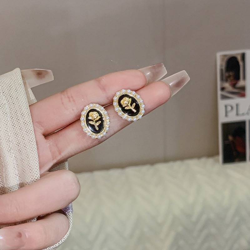 Giới thiệu Bông Tai Mạ Bạc 925 Hình Hoa Hồng Đính Ngọc Trai Chống Dị Ứng Phong Cách retro