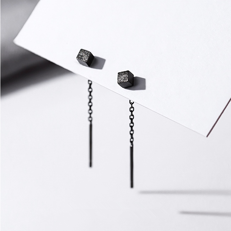 Giới thiệu Khuyên tai PAPAOZHU mạ bạc 925 họa tiết khối lập phương thiết kế tối giản thời trang cho nữ