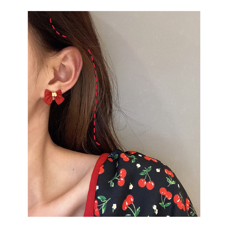 Giới thiệu Bông Tai Mạ Bạc 925 Hình Nơ Đỏ Đen Đơn Giản Cá Tính Phong Cách Hàn Quốc Cho Nữ
