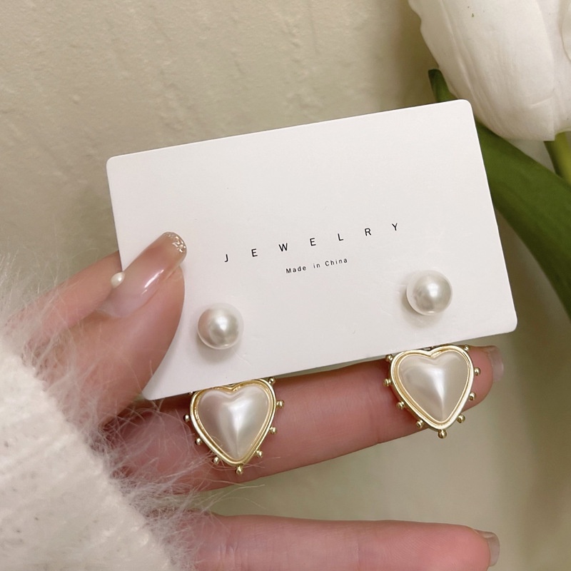 Giới thiệu Bông Tai Mạ Bạc 925 Hình Trái Tim Đính Ngọc Trai Phong Cách Retro Hàn Quốc Cho Nữ