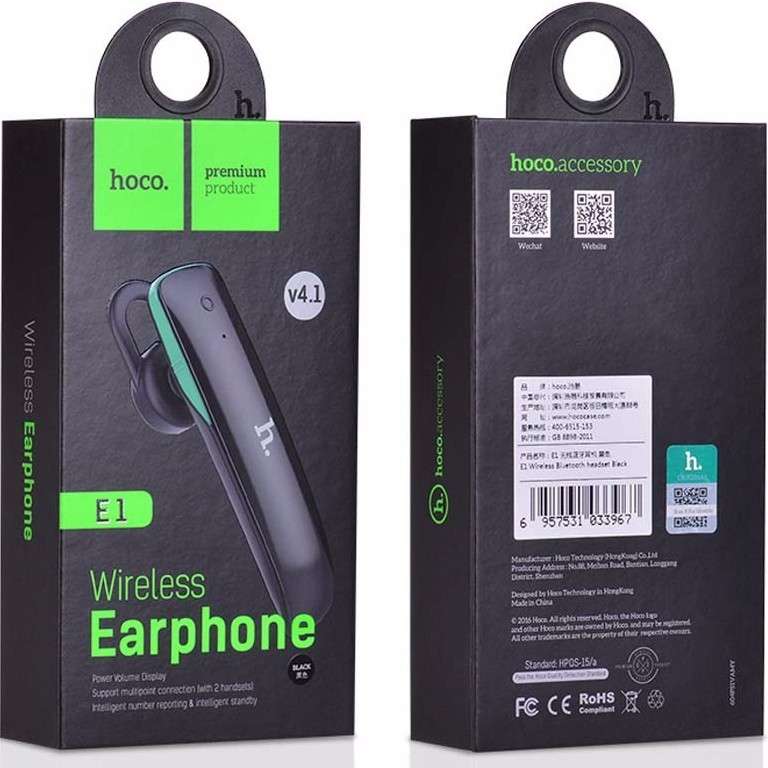 ⚡BÁN GÌ RẺ THẾ xin chào!!!⚡ ⚡ ĐỊA CHỈ : 108/1 Ngô Quyền F5 Q10, TP HỒ CHÍ MINH 📞 LẤY SỐ LƯỢNG HOTLINE & ZALO SỈ :086.9612.042 ⚡ Địa chỉ nhà sản xuất : Longhua Street, Longgang District, Shenzhen, Guangdong, China ⚡Các sản phẩm tại cửa hàng đều là hàng có sẵn nên các bạn yên tâm mua hàng nhé. ⚡ ======================================================================================== ✔️ HÂN HẠNH PHỤC VỤ KHÁCH HÀNG ✔️ TƯ VẤN CHĂM SÓC KHÁCH HÀNG TẬN TÌNH CHU ĐÁO ✔️ CHUYÊN CUNG CẤP NGÀNH HÀNG CÔNG NGHỆ SỐ - PHỤ KIỆN THỜI TRANG - ĐỜI SỐNG & NHÀ CỬA ✔️ ĐẢM BẢO CHẤT LƯỢNG - BẢO HÀNH CHU ĐÁO ✔️ GIÁ CẢ CẠNH TRANH NHẤT ONLINE ======================================================================================== Thông tin sản phẩm.. Tai nghe Bluetooth Hoco E1 Đen.. Tai nghe Bluetooth Hoco E1 sở hữu thiết kế nhỏ gọn và thời trang. Hơn nữa, nó vừa vặn phù hợp với tai và không dễ dàng để rơi ra. Tai nghe Hoco E1 có khả năng loại bỏ tiếng ồn cực tốt và cung cấp chất lượng âm thanh với đầy đủ các hiệu ứng thích hợp cho những người làm công việc ngoài trời ( lái xe ,buôn bán, kinh doanh hoặc nghe nhạc ...). Tai nghe Bluetooth Hoco E1 có chất âm trong sáng, dễ chịu mang tới những phút giây giải trí với âm nhạc một cách thú vị cho người dùng. Tai nghe kết nối tới các thiết bị qua chuẩn kết nối Bluetooth 4.1 ổn định và chính xác. Khoảng cách kết nối 10m cho phép bạn linh hoạt hơn khi sử dụng sản phẩm. Với thời lượng pin tuyệt vời và chất lượng cuộc gọi rất tốt E1 có thể đàm thoại liên tục trong vòng 4 giờ ở mức âm lượng cao nhất.....Tai nghe Bluetooth Hoco E1 được trang bị viên Pin lên đến 50mAh, cho thời gian sử dụng lên đến 4 giờ cho gọi điện, hơn 3 giờ cho nghe nhạc và thời gian chờ lên đến 55 giờ. Hoco E1 cho khả năng kết nối với hai thiết bị cùng lúc qua kết nối không dây bluetooth, tính năng chờ thông minh, giúp người dùng thuận tiện hơn trong quá trình sử dụng. Tai nghe cũng được thiết kế để tương thích tốt với cả các thiết bị chạy iOS lẫn các thiết bị Android, vì thế người dùng không cần lo lắng về độ tương thích của sản phẩm.